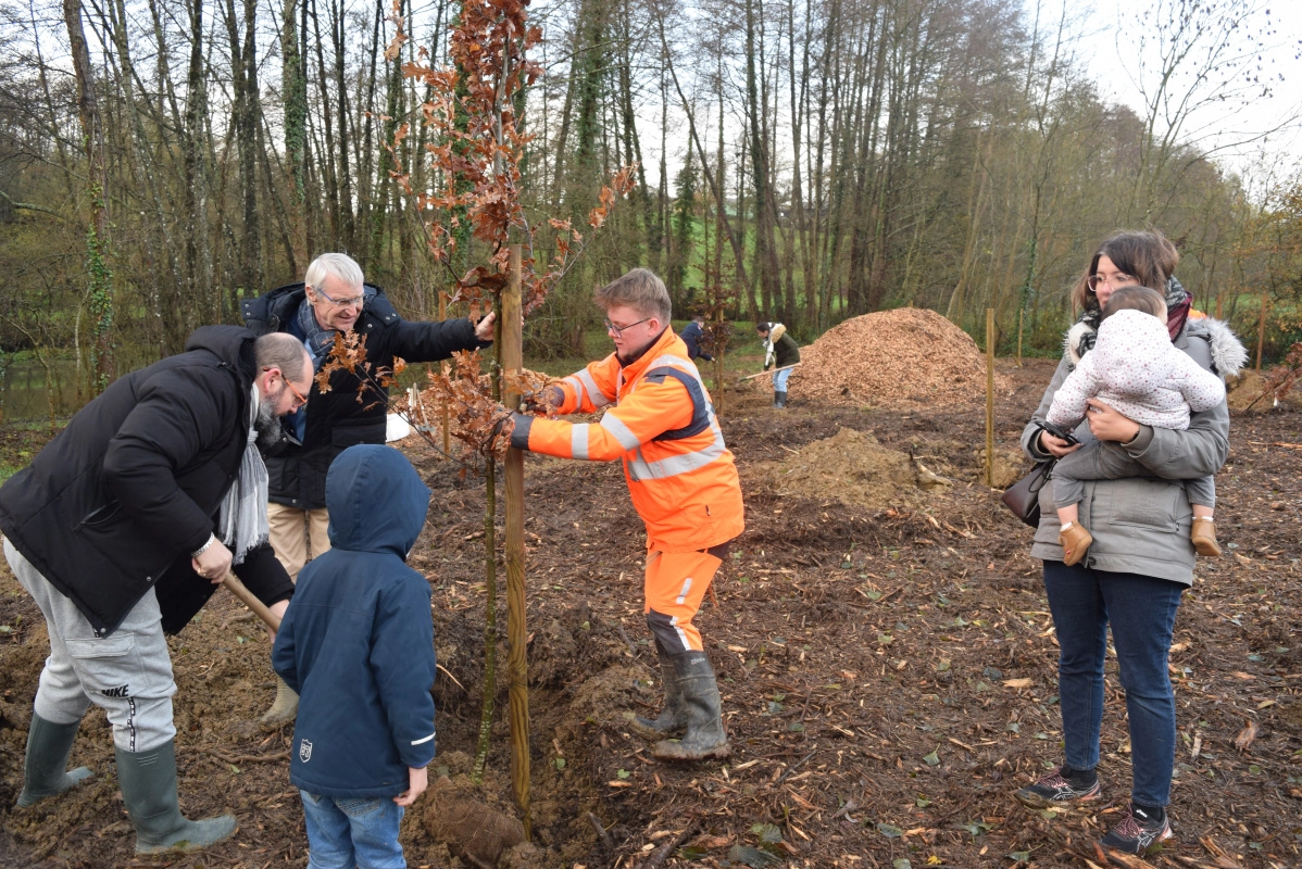 Samedi 6 décembre 2025, le site du plan d’eau de Rochefort a accueilli un moment symbolique : la plantation de 25 arbres dans le cadre du label « Une naissance, un arbre ». Une dizaine de familles avaient répondu présentes pour participer à cette initiative porteuse de sens, entre engagement écologique et célébration de l’arrivée de nouveaux enfants.